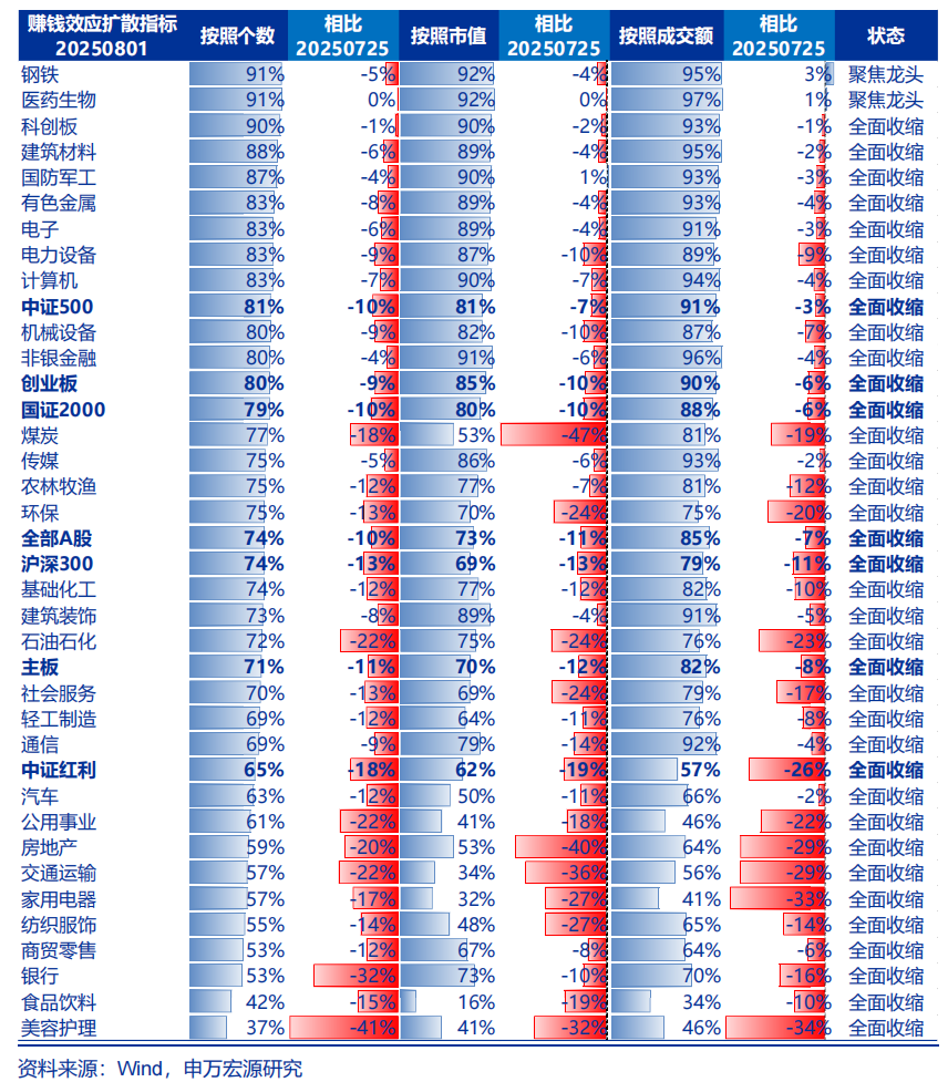原有的市场预期是三季度经济增长回落 + 政策重点偏向调结构。短期调整波段也会顺势消化这个预期。但我们提示,这个调整不是大级别。主因2026年相对2025年供需格局改善是大概率,反内卷强化了这个预期的可见度和持续性。远期基本面乐观预期,淡化了2025下半年需求回落的影响。我们继续提示,时间是牛市的朋友,核心是时间是基本面改善和增量资金流入A股的朋友。机构投资者赚钱效应积累量变到质变的窗口可能提前到2026H1。维持25Q4好于25Q3的判断,2026年会更好的判断。