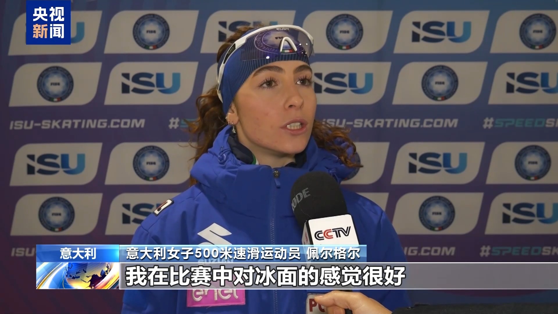 意大利女子500米速滑运动员 佩尔格尔:我在比赛中对冰面的感觉很好,整体发挥不错。我希望到明年二月赛道还能继续提升,但就现在来看,这是非常优秀的冰面,也是一个很漂亮的场馆。