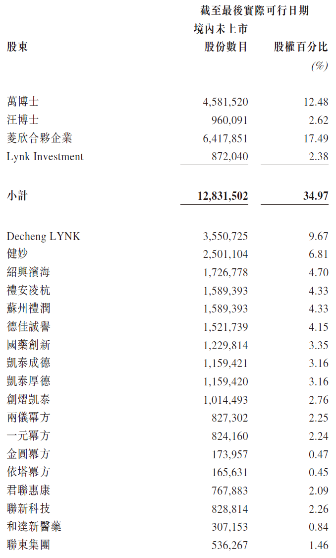 凌科药业最新股权结构如下表。